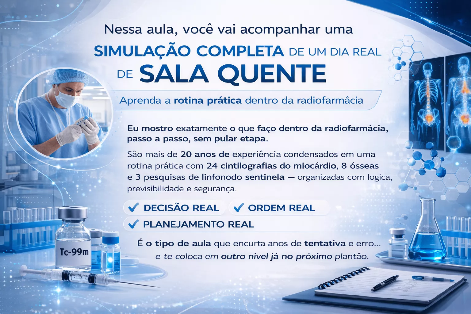 ✓ Quer encurtar anos de tentativa e erro e evoluir com base na experiência de quem vive a radiofarmácia há mais de 20 anos.